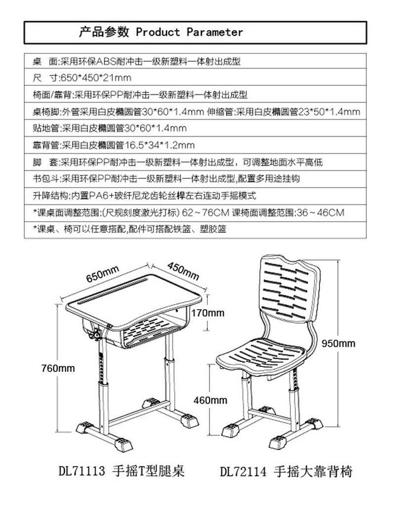 DL71113手搖T型腿桌